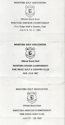 Way down below is a large sequence of scorecards from the Pine Ridge GC. They are ranked as the second best golf course in the Province on Manitoba. I got most of those cards from an individual who I assume was a great player. Most of those cards came from an person who played their frequently in many tournaments.